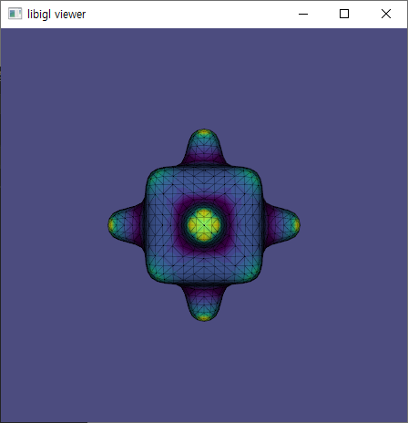 프로그램 실행하면 가우시안 곡률이 표현된 화면이 나온다.