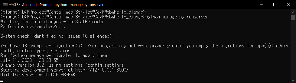 python manage.py runserver