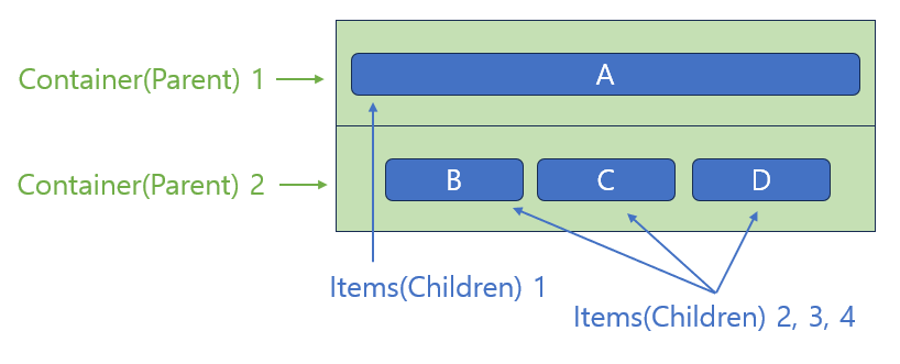 그리고 버튼을 하나 배치하더라도 항상 Container를 만들고 그 안에 버튼을 배치해야 FlexBox를 잘 활용할수 있으니까, Item을 사용할때는 무조건 Container 안에 사용합시다.